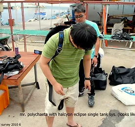 많은 도움을 주시는 고성 송지호 아이파크리조트의 박정기 강사님, 첫번째조사후 ;;; 왼쪽부터 조사끝나고 챔버들어가신 상규형, 지금은 본부에서 WCC준비하시는 길박사님, 그리고 지뢩이매니아 홍대주민 태서쌤 ;ㅅ; 이날 최저온도는 1'C ;ㅅ; 갈릴레오에는 10m에서 4'C가 찍혀있다;; 여름용 글러브 끼고 들어갔었는디 극도의 고통.. 빌려입었던 드라이 물 다새고 이날 난리도 아니었음 ㅎ 자원관에서의 첫 다이빙이었고, 동해는 거의 오년만이었고, 나름대로 정량조사를 하려했고, 손가락은 찌릿찌릿저려서 지퍼백은 안열리고, 뭐 이런저런 핑계거리들 덕분에 내카메라에는 미역사진 잘피사진 한두장, 바닥사진 여러장, 멍게, 미더덕사진만 ;ㅡ; 샘플링해온 녀석들, 분류되어 수장고에 보관된다. 턱에 빨판을 가지고 있는 오렌지..